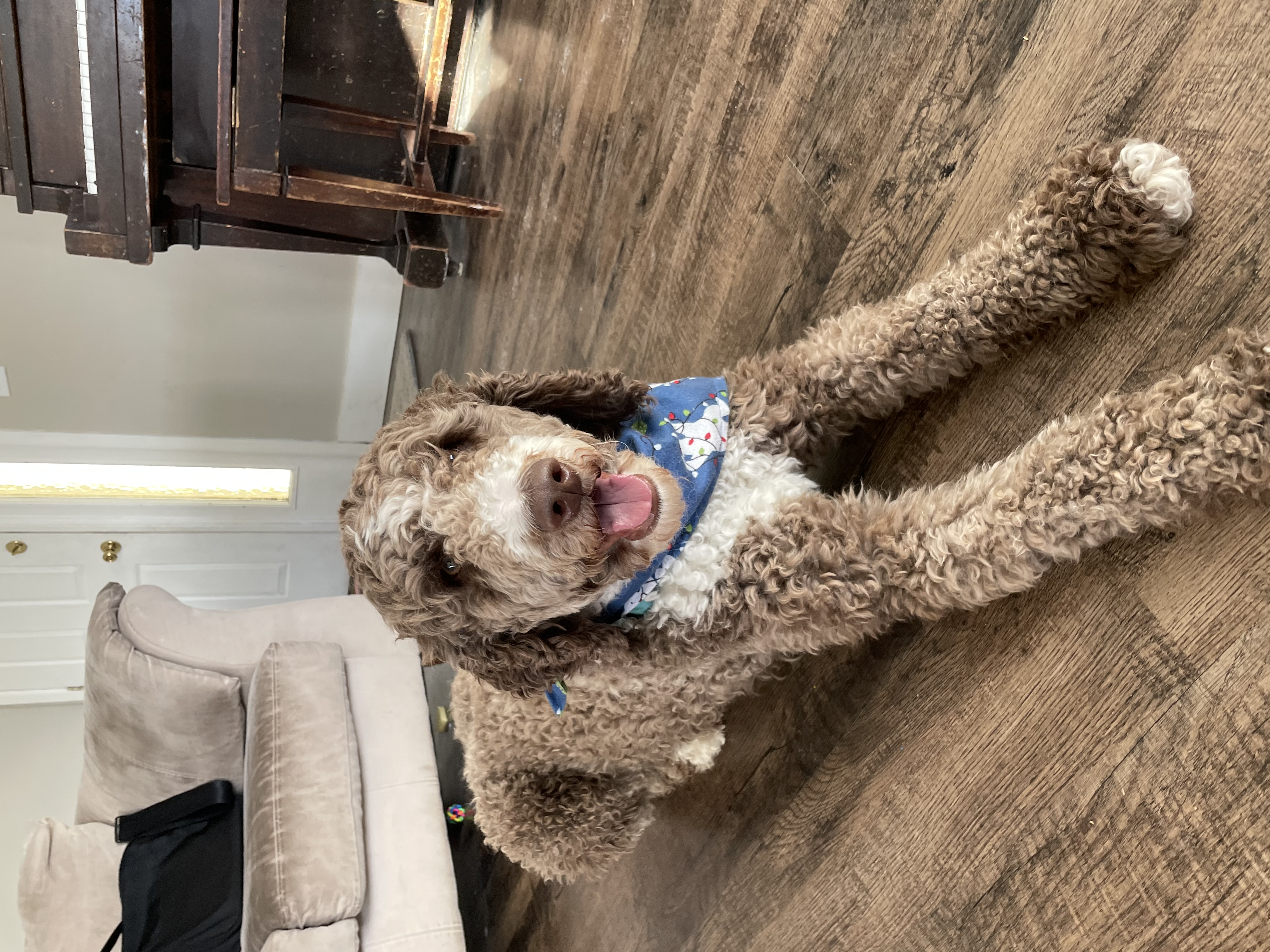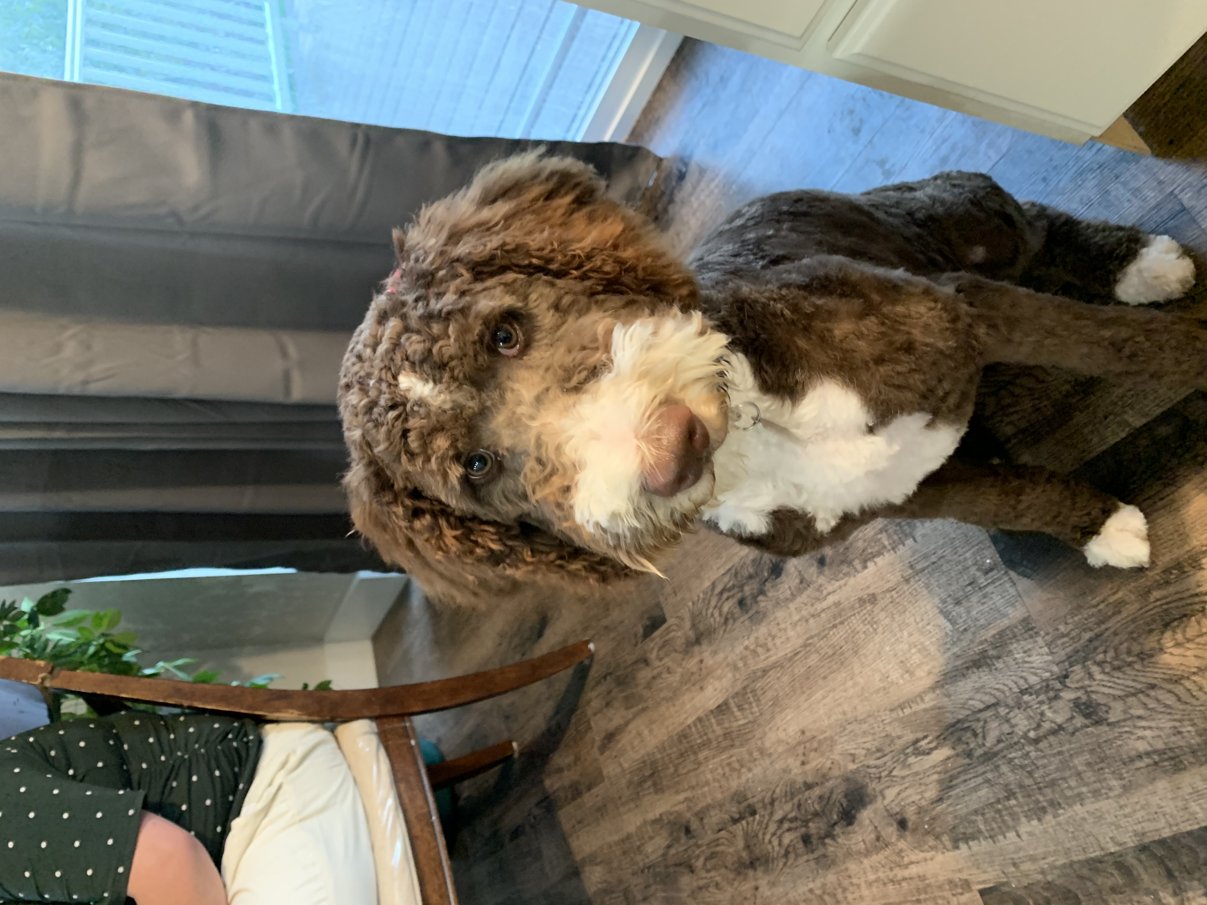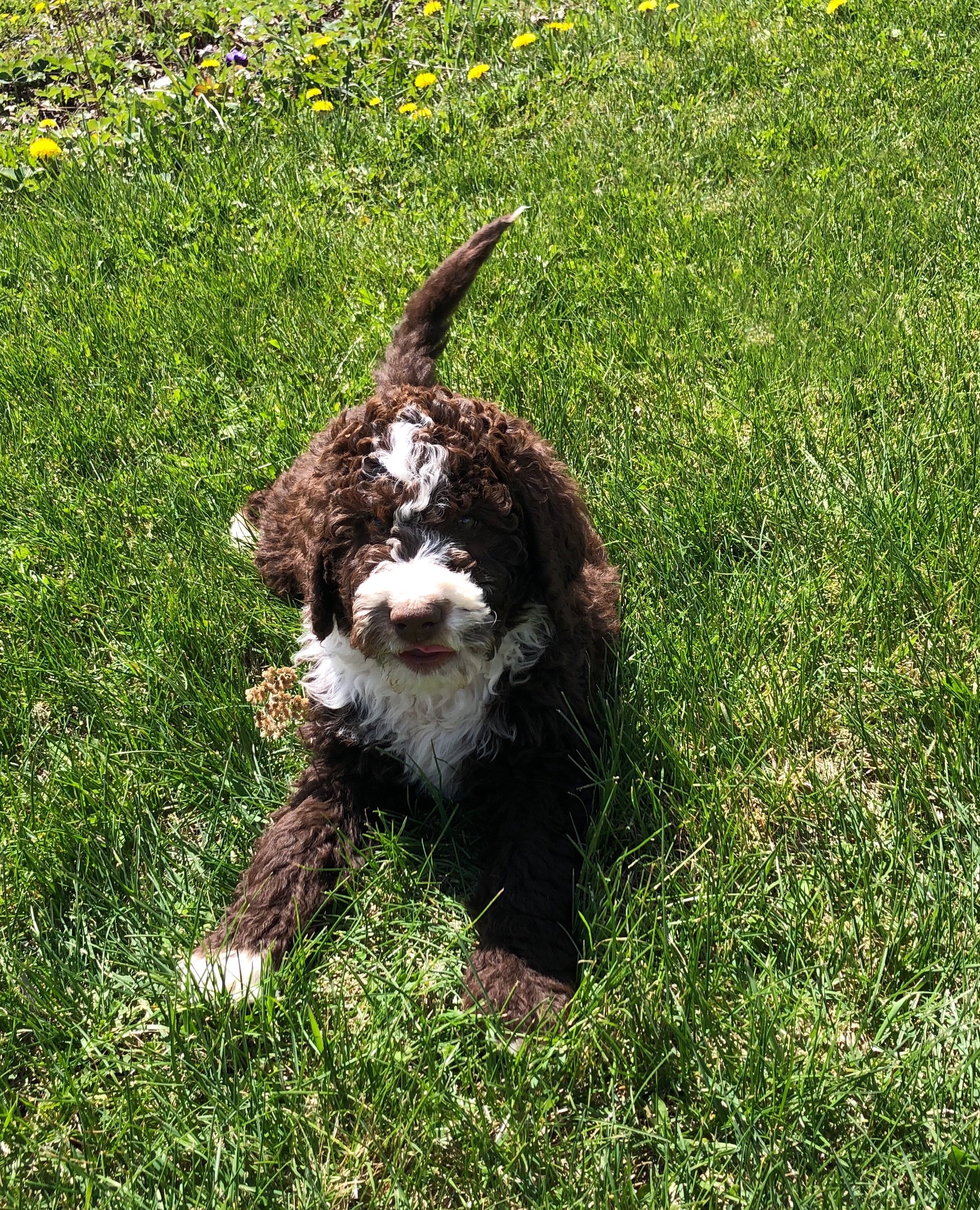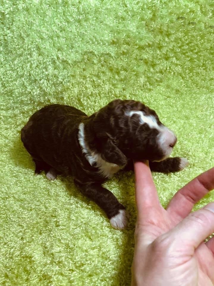Maggie is the dog that started it all! Maggie joined our family in 2019 and we immediately fell in love with her. She is an F1B bernedoodle (75% poodle 25% Bernese Moutnain Dog) and completely non-shedding. She has adorable brown eyes and fur. She is so kind and gentle. She's amazing with kids, and loves to snuggle. She loves to be with us, and is always by our side. She is low energy, but loves to play when you want to.