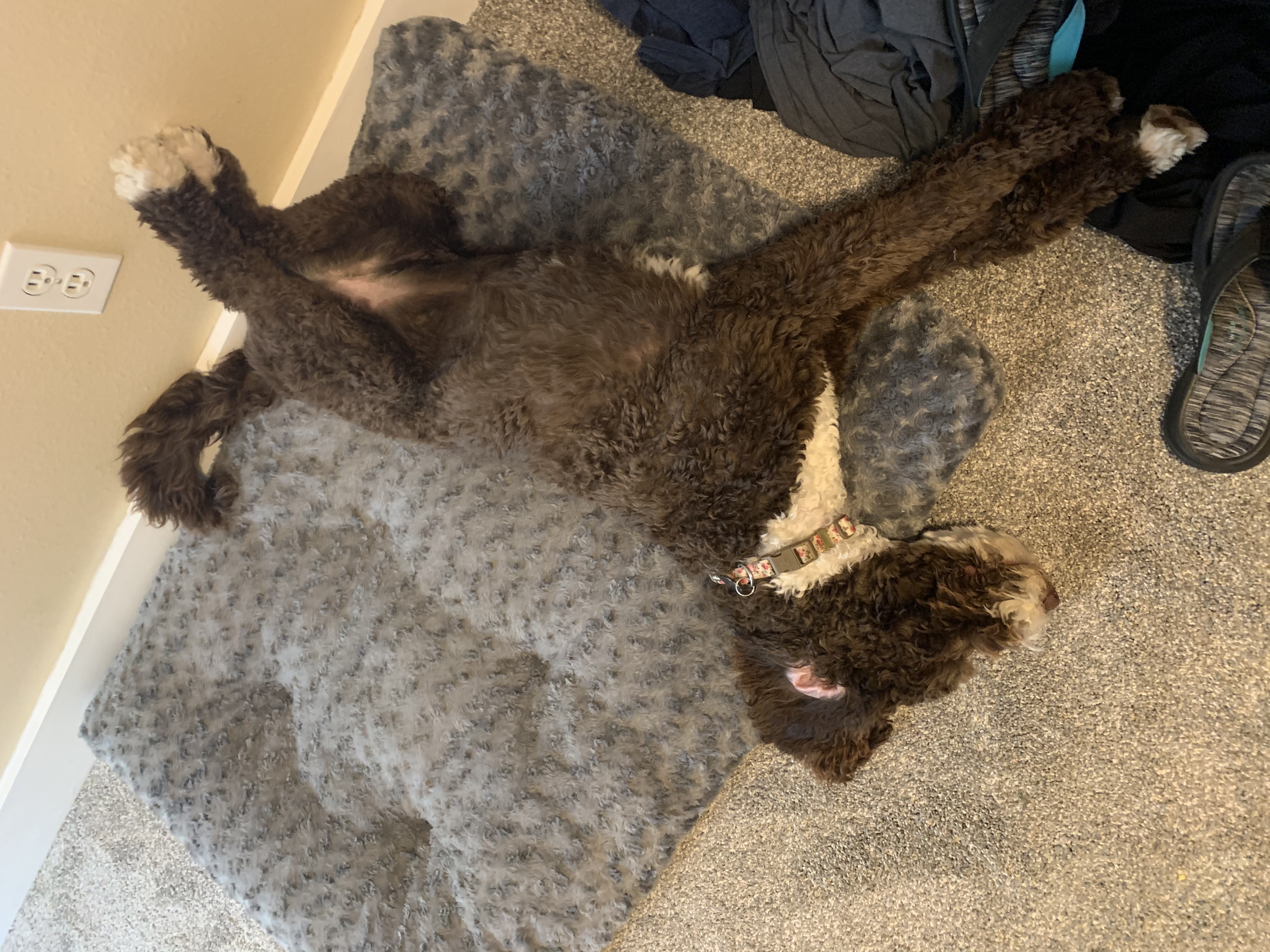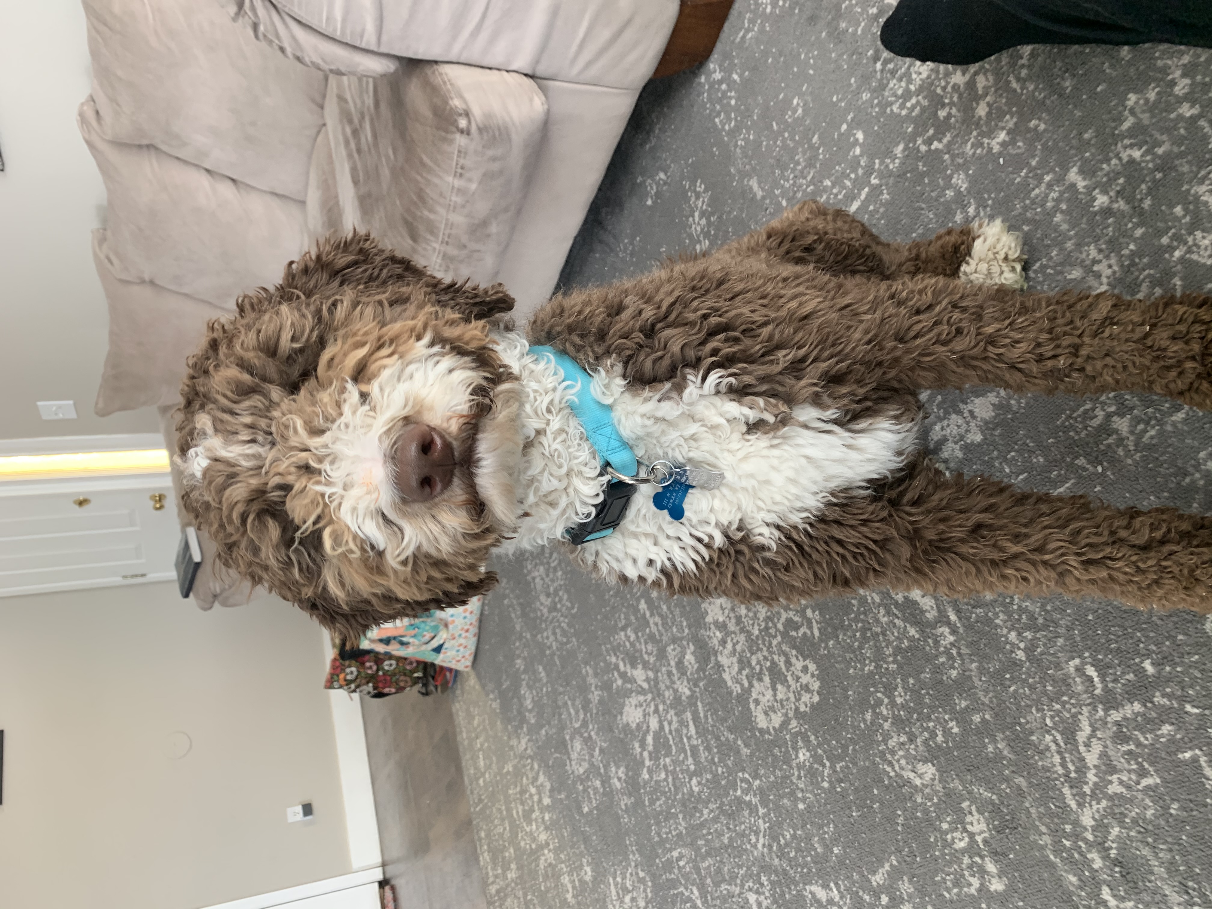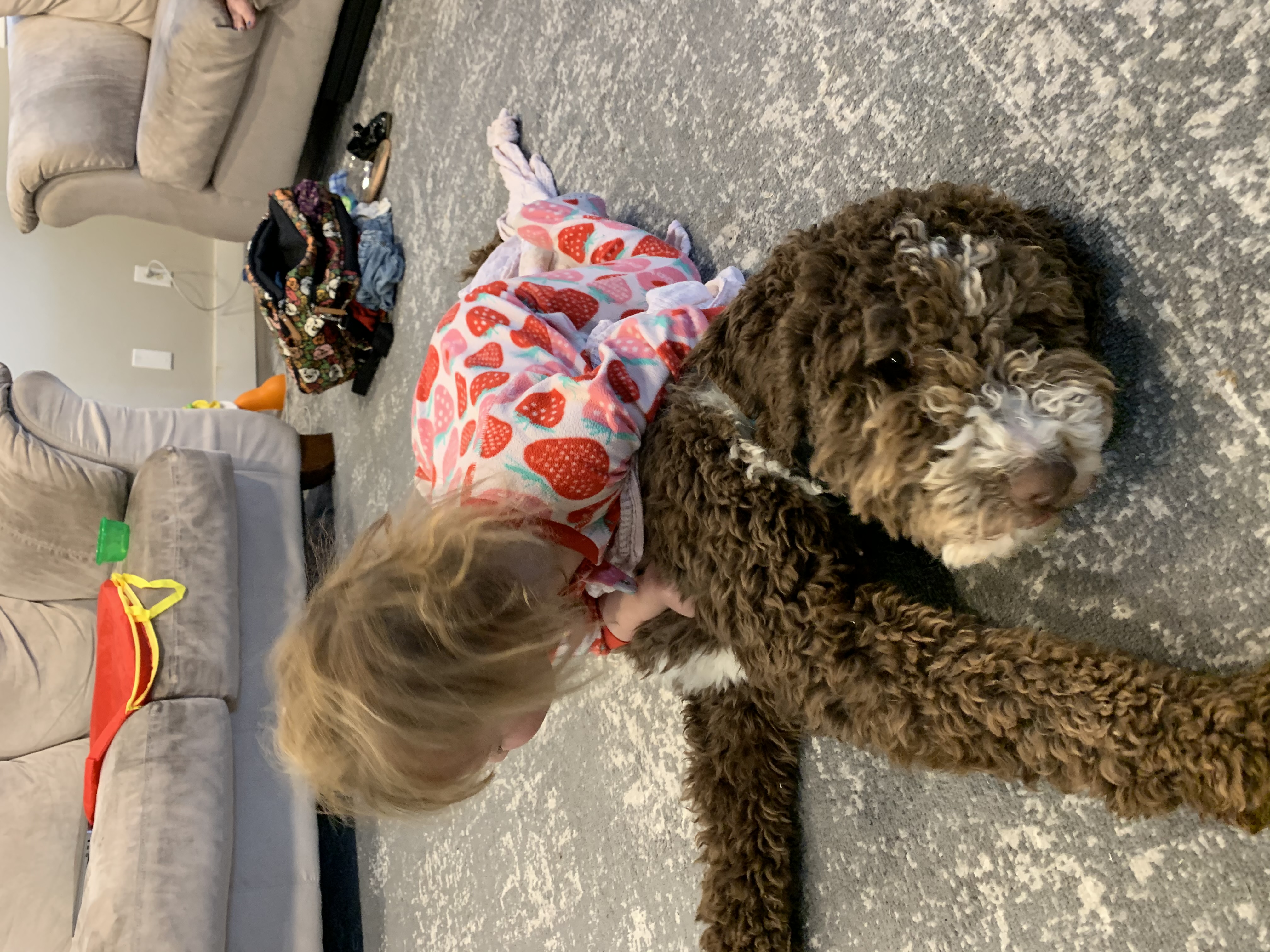 Maggie is the dog that started it all! Maggie joined our family in 2019 and we immediately fell in love with her. She is an F1B bernedoodle (75% poodle 25% Bernese Moutnain Dog) and completely non-shedding. She has adorable brown eyes and fur. She is so kind and gentle. She's amazing with kids, and loves to snuggle. She loves to be with us, and is always by our side. She is low energy, but loves to play when you want to.