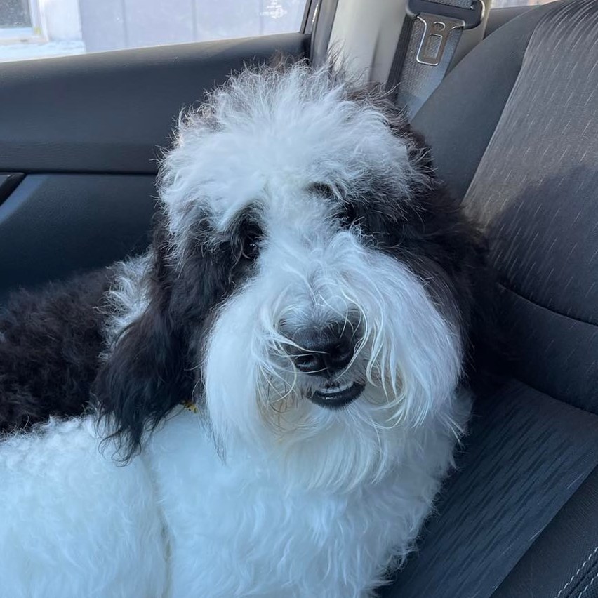 Stud: The dad is a 4th generation bernedoodle (50% poodle - 50% Bernese Mountain Dog). He's about the same size as the mom and also great with kids. He doesn't shed.